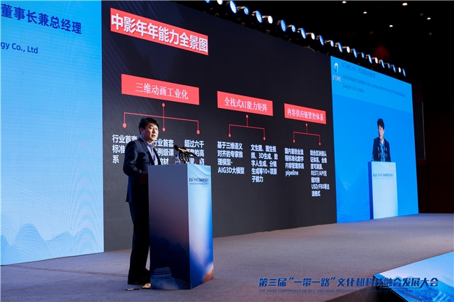作为文化科技领域的代表性企业,中影年年创始人、董事长郭勇受邀出席大会,并在“人工智能产业助力国际文化交流与合作”分会场发表题为《以人工智能,构筑国际文化交流新生态》的主题演讲,从技术体系、应用模式到国际合作等方面介绍相关探索与进展。 从动画工业化到AIGC:推动中国文化的科技化表达在“一带一路”合作持续深化的背景下,数字经济与文化科技正在成为推动文明互鉴的重要力量。“文化和科技融合”亦已成为国家明确的发展方向。自2011年成立以来,中影年年以弘扬中华优秀传统文化为使命,持续推进从动画工业化体系建设到AIGC深度融合的技术升级路径,探索文化表达的新形式。