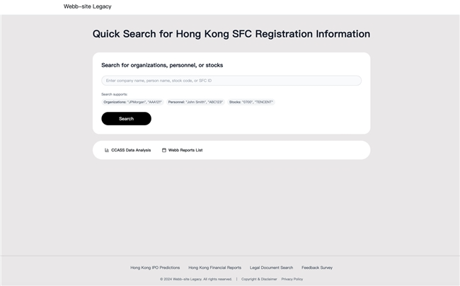 2026年1月13日,香港知名投资评论家、前港交所独立非执行董事David Webb先生与世长辞。为延续其推动资本市场透明的公益事业,极峰精灵与熊猫证券今日正式推出基于David Webb数据库的网站(访问地址:webb-site.qizai.ai),免费向公众开放,以技术之力承接其未竟使命。 David Webb先生出生于英国,上世纪90年代移居香港,以其严谨的逻辑分析、深厚的企业管治洞察力,在香港投资界建立了卓越声誉。他于1998年创立非营利网站Webb-site.com,长期无偿发布上市公司研究报告与企业管治分析,成为香港金融从业者、监管机构及媒体不可或缺的信息基石与监督利器,深刻影响了香港资本市场的信息透明度生态。 为纪念David Webb先生的贡献,并使其宝贵的数据遗产持续服务市场,极峰精灵与熊猫证券合作开发了:webb-site.qizai.ai 。该站点依托Webb馈赠给这个世界的数据体系,完成了网站底层架构的全面重构,并提供用户友好的极简UI设计,打造更高效便捷的统一查询入口。 核心功能包括: 1、SFC持牌机构及人士查询:深度整合香港证监会持牌机构与个人的历史记录,便捷查询职业背景与相关监管记录。 2、CCASS持仓透视:实时追踪香港中央结算系统持股变动数据,为分析股权集中度与市场动向提供关键参考。 3、数据自动化同步:继承原站的自动化数据收集逻辑,确保信息的时效性与连续性。